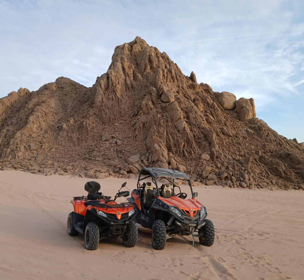 Experience an exciting quad biking tour from 9:00 to 14:00 through the stunning desert landscapes of Hurghada. Ride across scenic dunes and rocky formations, taking in the dramatic natural surroundings while enjoying an adventurous and adrenaline-filled journey.Perfect for thrill-seekers and nature enthusiasts looking for a unique way to explore the desert in a safe and guided setting.